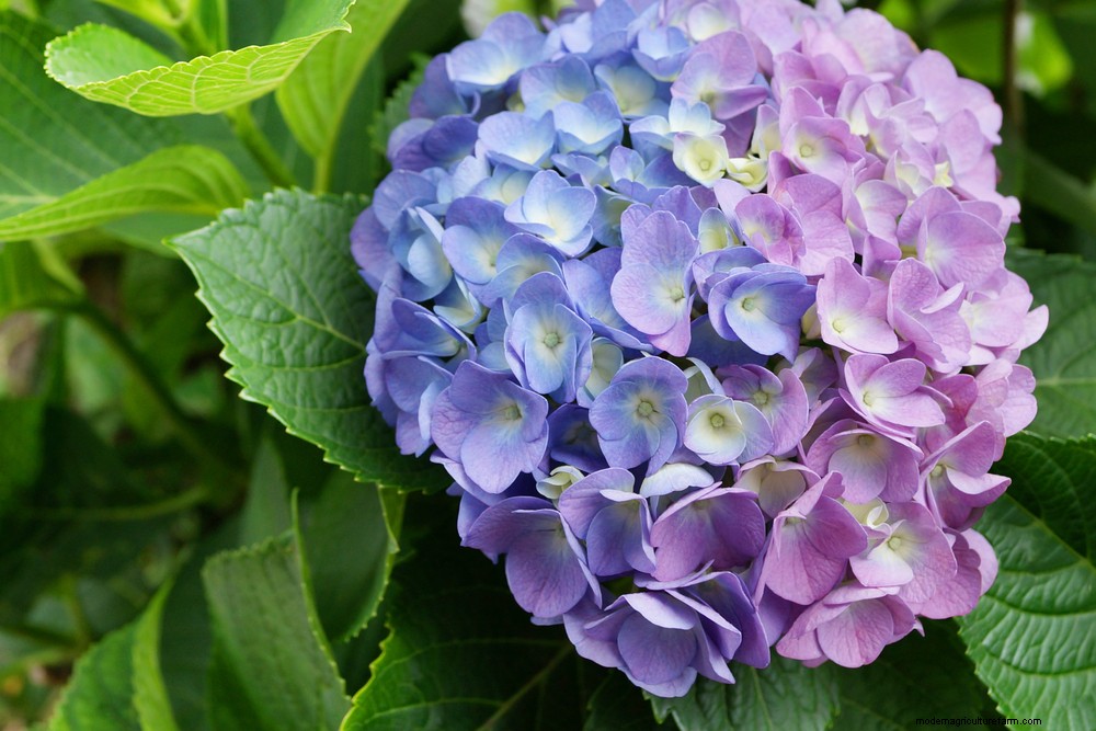 For blue flowers on your hydrangea the soil needs to have a pH level between 5.2 and 5.5, as well as altering the mineral composition of the soil to provide plants with more aluminium.
