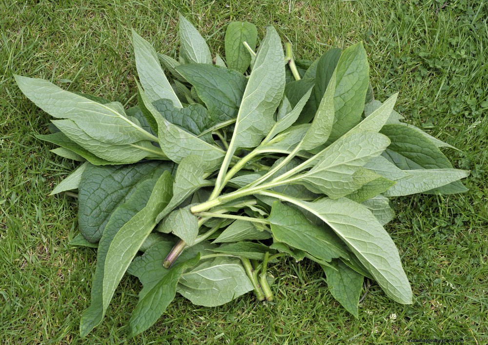 Be careful to keep your comfrey leaves labeled and separate from your other herbs, so that you don’t accidentally end up putting them in your herbal tea!