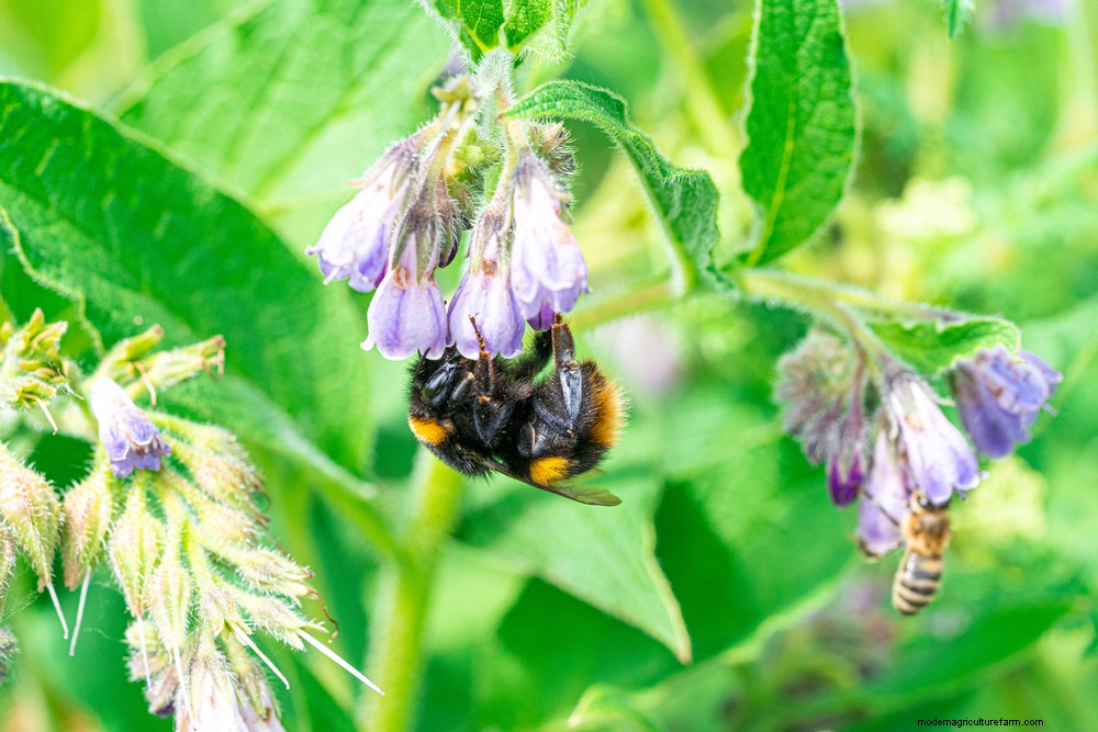 Comfrey flowers, however, attract a different class of hard-working insects. Namely honeybees and bumblebees. So, if you are a beekeeper, or just a gardener keen on rewilidng your backyard, know that growing comfrey can help more than just the soil. It can tap into (re)creating an entire ecosystem with healthier habits and more nutritious pollen and nectar for all creatures to eat.