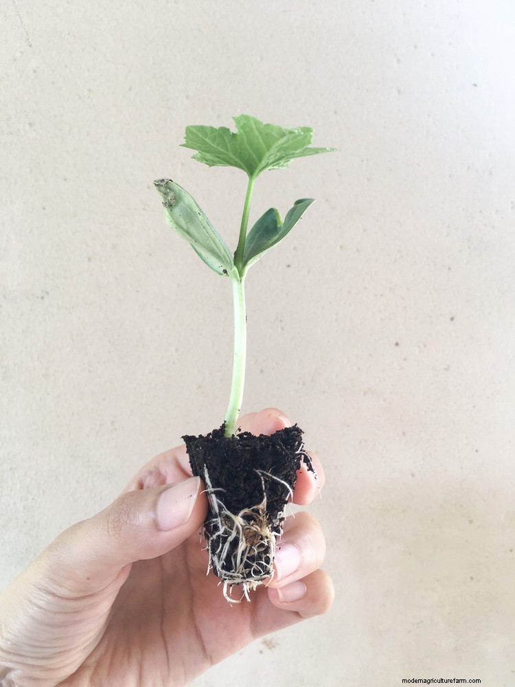 Squash get rootbound quickly, so you need to ensure the young seedlings have enough space to grow. Once they have developed their first pair of “true” leaves, consider transplanting them to larger biodegradable pots. Be as careful as possible during this step, as the plants are susceptible to root damage.