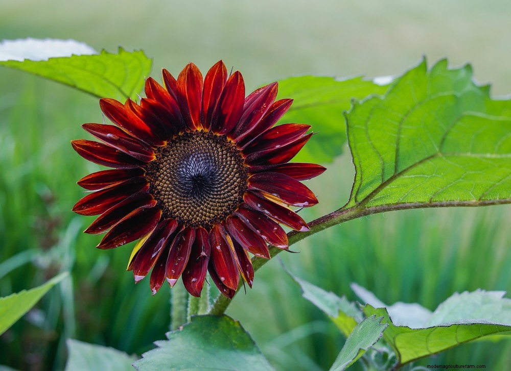 - For making a bold statement, Helianthus annuus ‘Chianti’ is multi-stemmed and has dark, wine red petals tinged with flecks of gold. This variety attracts pollinators too.