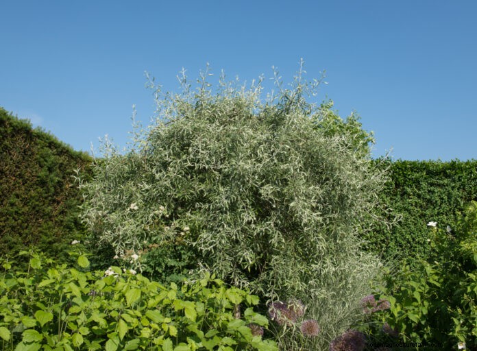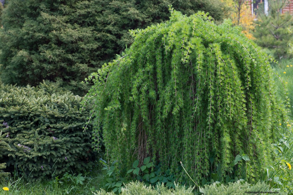 Salix caprea ‘Kilmarnock’ is a grafted, weeping form of willow, while Larix decidua ‘Pendula’ is a compact, weeping form of European larch. Other such varieties include Cercidiphyllum japonicum ‘Pendulum’, Malus ‘Royal Beauty’ and Caragana arborescens ‘Pendula’.