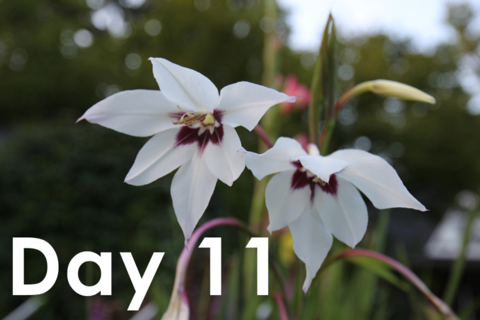 Gladiolus murielae starts flowering in August and continues right through until the frost, a full three months later. As they reach 1m plus in height, a little discreet staking may be necessary. Buy fresh bulbs each year as they may not perform well in their second year. Plant them 8-10cm deep in fertile soil, in full sun.