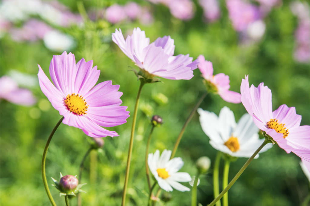 These easy-to-grow plants practically guarantee you a constant supply of their simple, pretty flowers all summer. Their stems of feathery foliage are topped with numerous flowers in shades of white and pink to crimson, depending on variety. If you can deadhead each bloom as it fades, flowering will continue all the way to the first frosts.