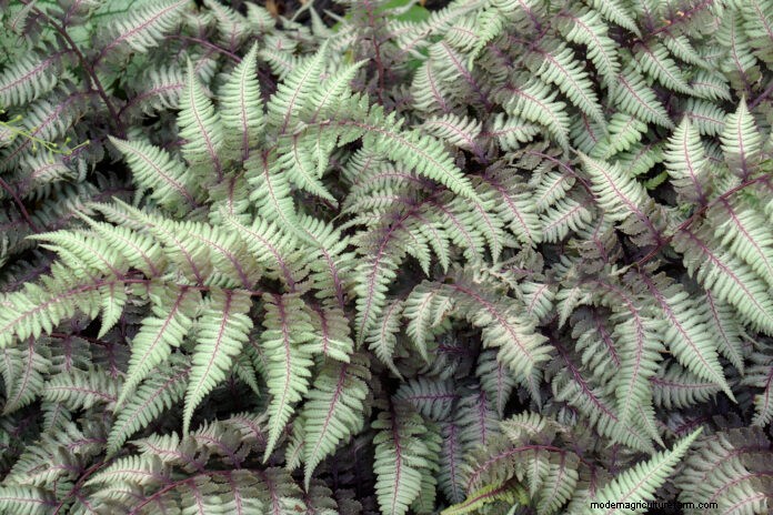 Also called the Japanese painted fern, this gorgeous plant is surely one of the most beautiful of all ferns, with its beautiful frosted grey-green fronds on reddish-purple stalks. Best grown in shade in a sheltered spot. A deciduous fern, Athyrium niponicum var. pictum will die down in winter. Grow in a sheltered position.