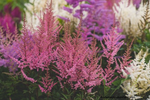 A pretty perennial that has flowers reminiscent of a feather duster! A good choice for the very wettest sites in your garden, where it will produce its proud flower spikes in pink, white or dark red at the end of spring. Astilbe also bears attractive, finely-cut leaves and many have rich red stems.