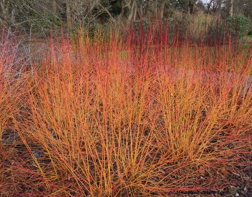 This is one of the best shrubs for providing vibrant colour to the garden in winter. The secret to getting the best display of colourful stems is to prune the plants back to 15cm above ground level at the end of winter each year. One of the most eye-catching varieties is ‘Midwinter Fire’ with its mix of orange, red and yellow colouring on the same stem.