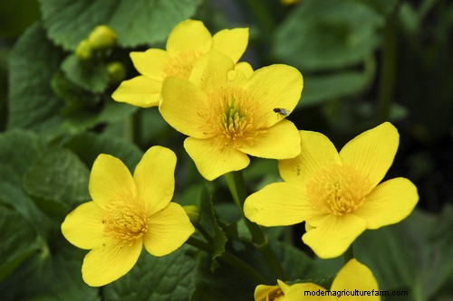 Also called the marsh marigold, this plant can cope with very wet conditions. It is in flower in March and April, producing buttercup-yellow flowers that compete with daffodils for the boldest display of spring colour. Caltha palustris has large, waxy, heart-shaped leaves. Native to the UK, it is often planted around the margins of a pond.