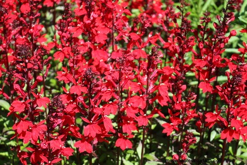A high-impact perennial plant that works well as part of an ‘exotic’ display in the garden. ‘Queen Victoria’ is the most common variety, producing bright red flowers in late summer and into autumn, to complement the large, dark purple foliage. Mulch the crown of Lobelia cardinalis after it dies down in winter to protect it from winter wet.