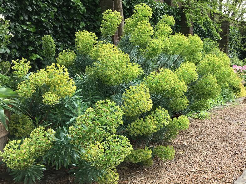 Euphorbia charcias is a great border staple. Evergreen whorls of bluey-grey foliage contrast perfectly with zesty green flowers and bronze eyes, from March through to May. It works equally well in minimalist schemes due to its architectural appearance. Furthermore, it’s drought tolerant and rabbit and deer resistant. Beware: it can be an irritant to skin and eyes. Order here.