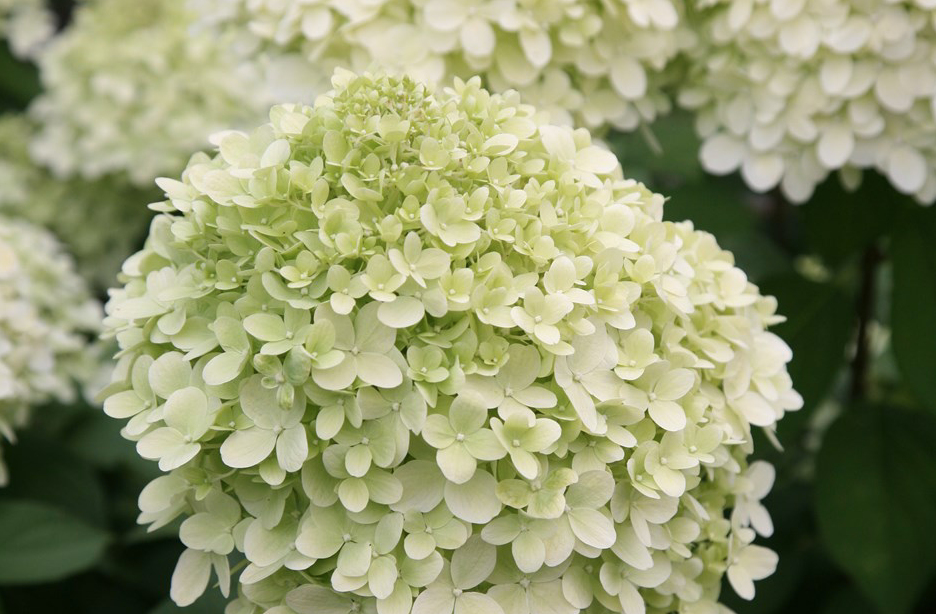 A robust upright shrub that works well in either full sun or part shade, any soil and any aspect, it produces masses of long lasting cone-shaped flowers that start green fading through to white and finally a delicate pink in autumn. The flowers also last well in vases, are great for pollinators and the leaves provide vibrant autumn colour. Order here.