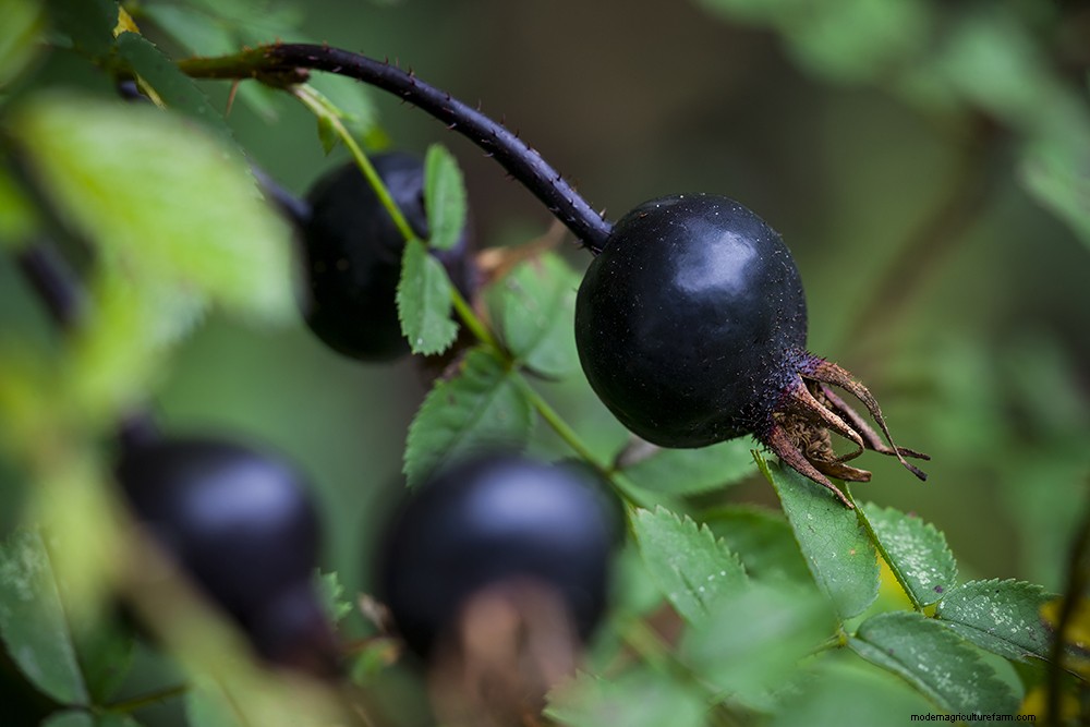 Also known as the Scotch rose and the burnet rose; burnet is the common name for Sanguisorba minor, which has similar leaves to this rose. It can sometimes be seen growing wild in coastal areas because it thrives in sandy soil and is a sturdy plant that shrugs off strong winds. The stems carry a countless assortment of thorns – pinky red when young – and its hips, hanging on small black stems, are unmissable. Darkest purple, almost black, the hips catch the eye as if a juicy low-hanging fruit to be gorged on.