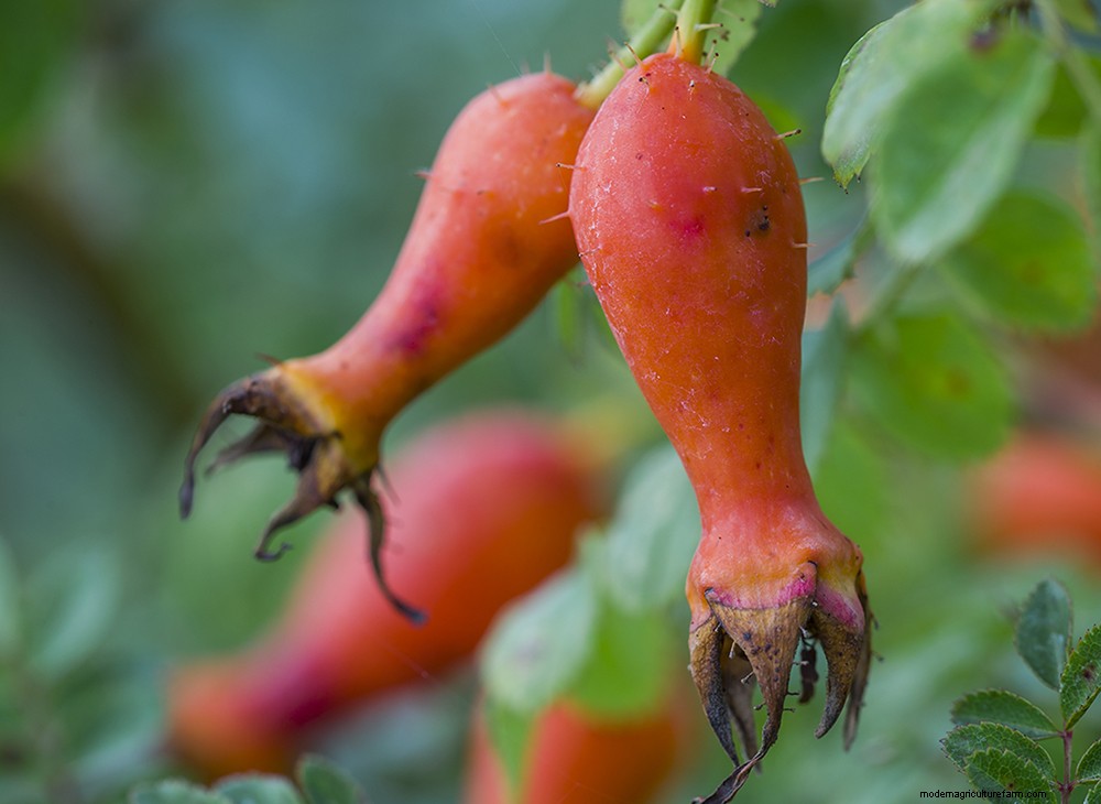 This rose is all about abundance. It has at least two flushes of flowers and the blooms are large, luxurious and highly fragrant. Each flower looks as if somebody has scrunched a large handful of hot-pink sweet pea blooms into a bundle and placed them on the plant. The hips that follow are typical of those of a Rugosa type rose: short and tubby, similar to a cherry tomato in appearance if it wasn’t for the long beard of sepals that hang from the base of each one.