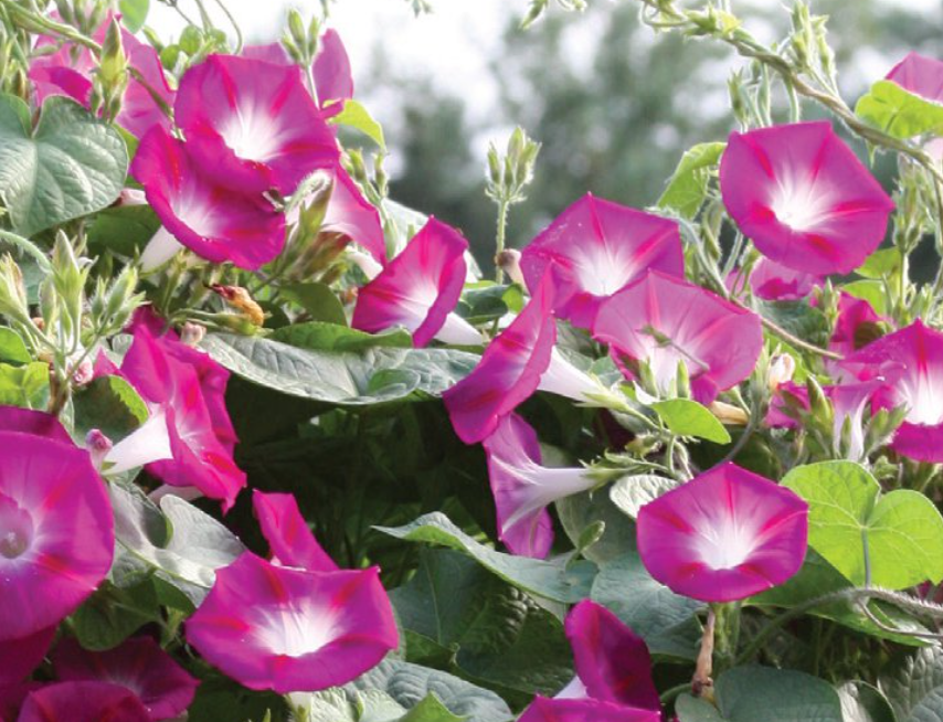 - Sow Morning Glory ‘Party Dress’ for a pop of Mediterranean colour. The exceptional magenta and white bicolour flowers bloom in profusion on this tall climbing plant.
