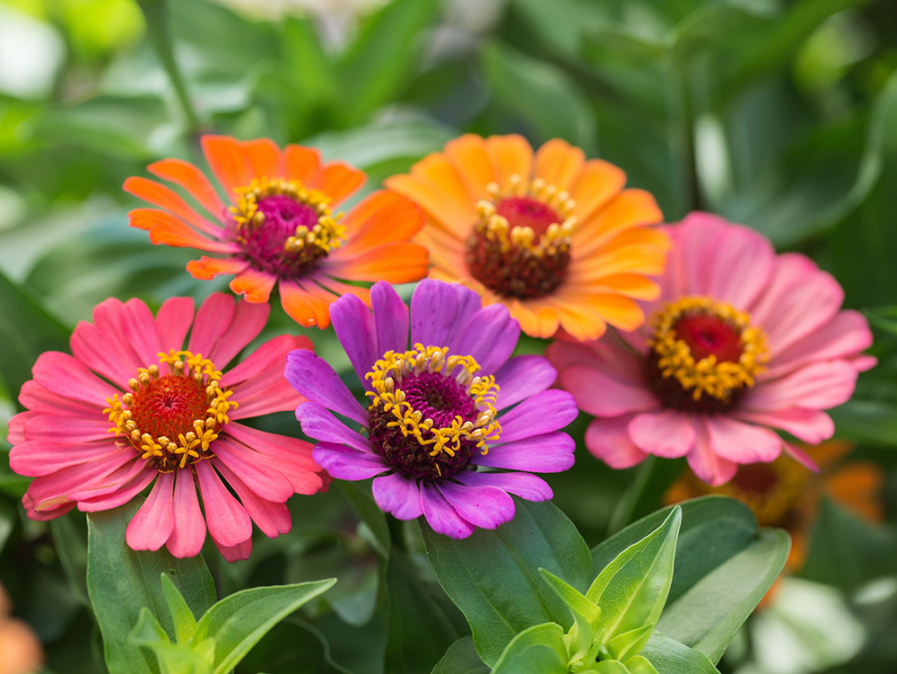 - The sun always shines with Zinnia ‘Forecast’. These beautiful, single blossoms will shower your garden in multi-coloured hues of purple, pink, yellow and orange. Blooms are prolific from mid-summer to the first frosts, and flower atop luscious green foliage.