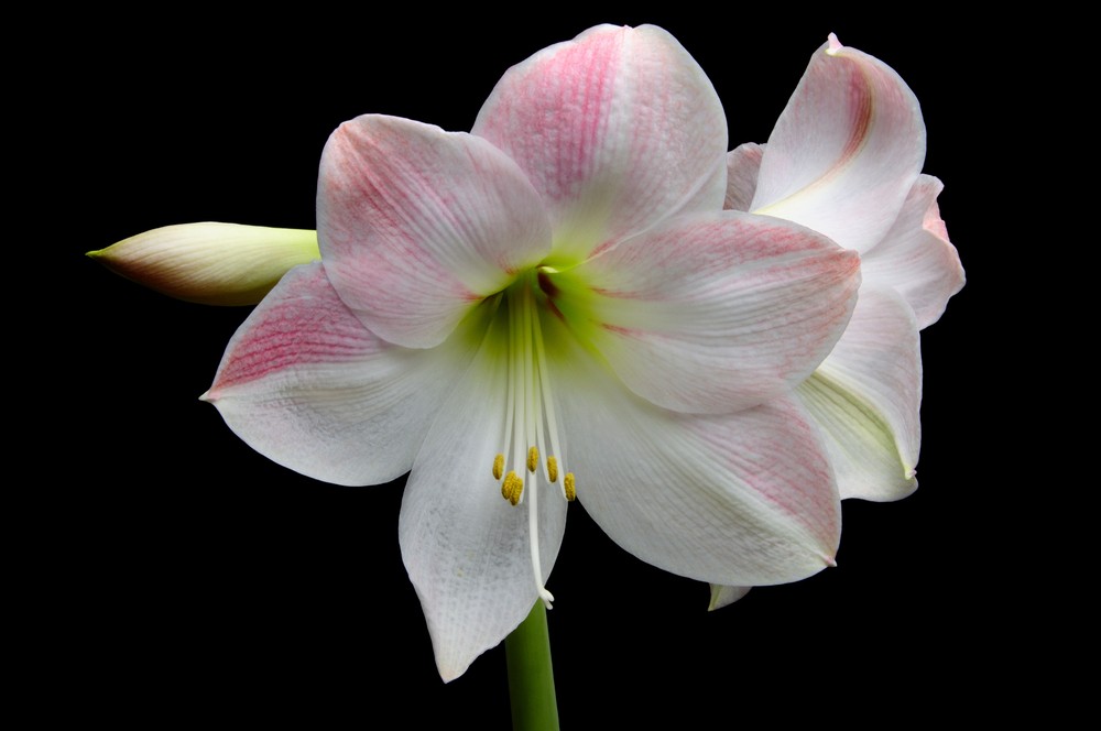 Fresh apple-greens might be a better choice if subtler flowers are preferred. ‘Lemon Star’ – actually a very pale limey-green with a darker green throat – is beautiful, as is ‘Alfresco’, a double-flowered white Hippeastrum, with a touch of green in the throat. “This is a particularly refined variety, with frilly flowers, and it produces up to four or five flowers per stem,” George says.