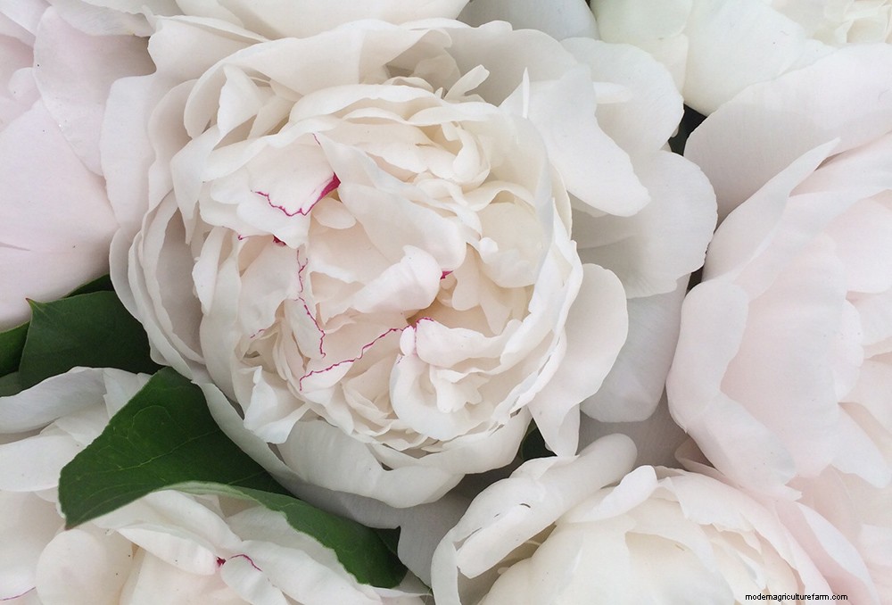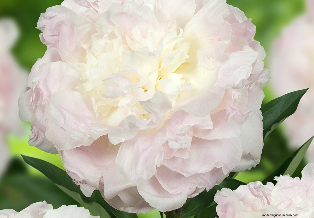 Short, strong, upright stems give ways to stunning, slightly ruffled flowers. Lovely transition from blush pink to cream.