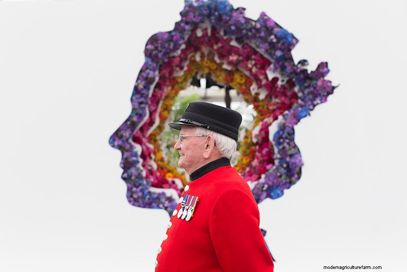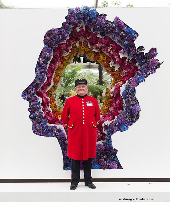 On the Royal tour of Chelsea, the New Covent Garden exhibit was visited by HM the Queen, who was photographed in front of her three metre high floral portrait, containing 10,000 cut flower and foliage stems. The pictures have since appeared on newspaper front pages and it has quickly become one of the most iconic images of Chelsea 2016.