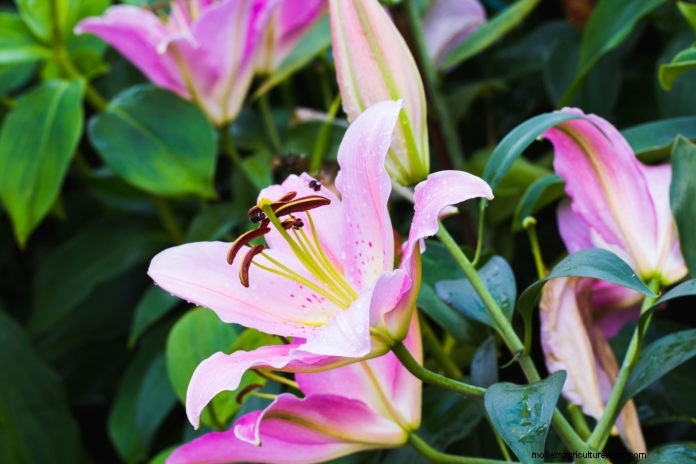Not all lilies need the same conditions. Oriental lilies like acidic soil, so if your garden has peaty soil look forward to spectacular displays. Asiatic lilies prefer alkaline soil, but others such as Longiflorum types and Oriental Trumpets will grow in both. Martagon, or turk’s cap types, need a shady spot in humus-rich soil to emulate the woodland conditions they originated in.