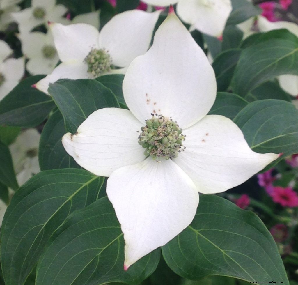 A tremendous tree for small gardens, with simple but eye-catching white bracts throughout June. This is followed by red fruits at the end of summer and then fiery autumn leaf colour. You could even grow it in a large container!