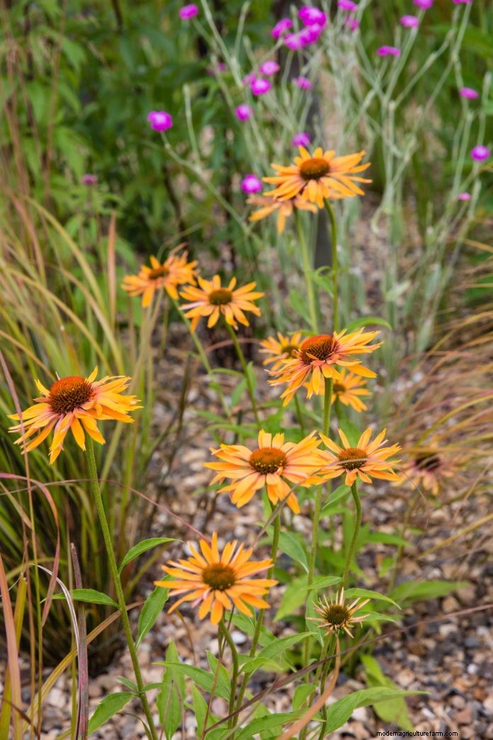 Orange and purple is one of the most high-impact colour combinations you can add to your garden. If your soil is light and sandy then here are two suitable candidates for this colour scheme: Echinacea ‘Orange Passion’ is a cheerful perennial that displays a vibrancy of colour that begs attention. And purple flowered Lychnis coronaria is a drought tolerant perennial that peppers borders with sharp bursts of eyecatching purple.