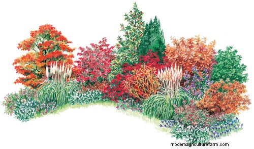 - A position that allows the shrubs to be backlit at some point in the day will add to the visual effect, illuminating their smouldering colours at this time of year.