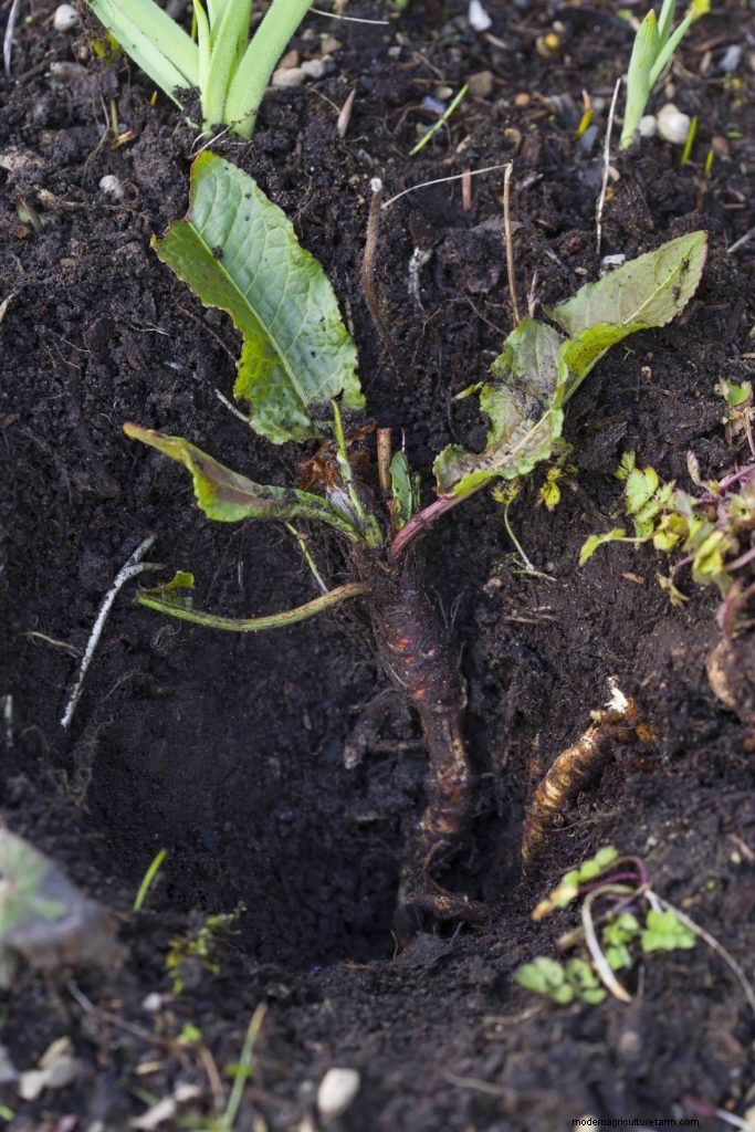 This is a very difficult weed to remove once borders are full because its roots run very deep, meaning that room around the plant is needed in order to dig down deep. Severing the root will result in the plant resprouting.