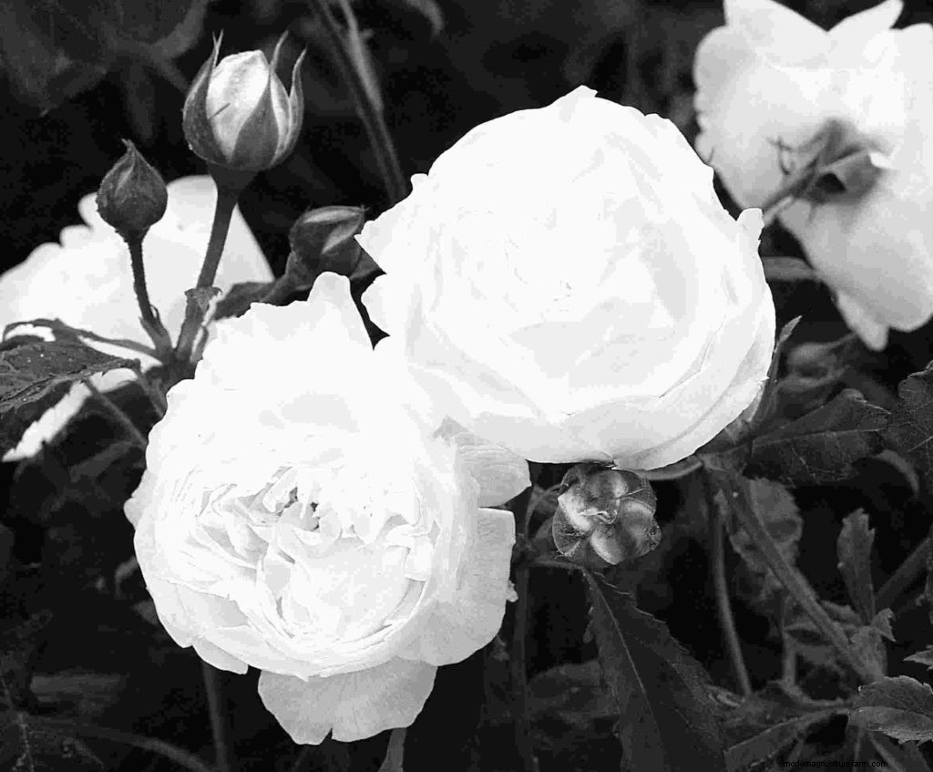 Philip recommends the simple and single white blooms of ‘Keros’ to brighten up a dull corner. “This rose repeats with unbelievable gusto. It simply doesn’t know how to stop flowering. It produces three, not two flowerings, probably at the expense of fragrance.”