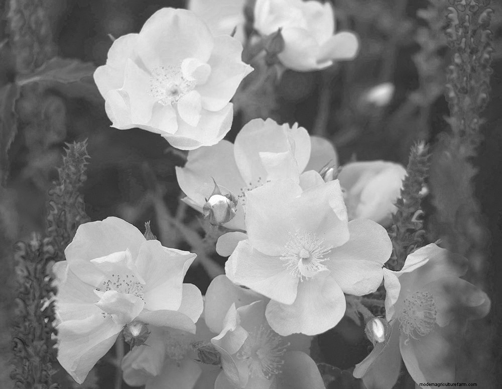 Michael recommends ‘Rosy Cushion’ as ‘an outstanding variety for flowering ability.’ This modern shrub rose presents continuous clusters of soft-pink, single flowers, but sadly no fragrance. ‘Kew Gardens’ is white flowered, lightly fragrant and has an upright habit, which when closely planted makes a good, long-flowering hedge.