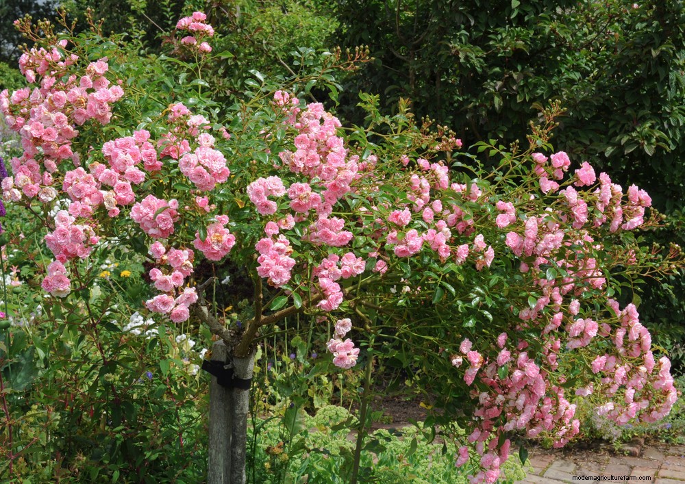 Climbing roses have many uses, such as decorating pergolas and arches, as well as rambling through trees and bushes or covering unsightly objects. Rambling roses have small flowers that are displayed in bunches. Most flower once a year in early summer, although there are some that flower all summer such as ‘The Albrighton Rambler’.