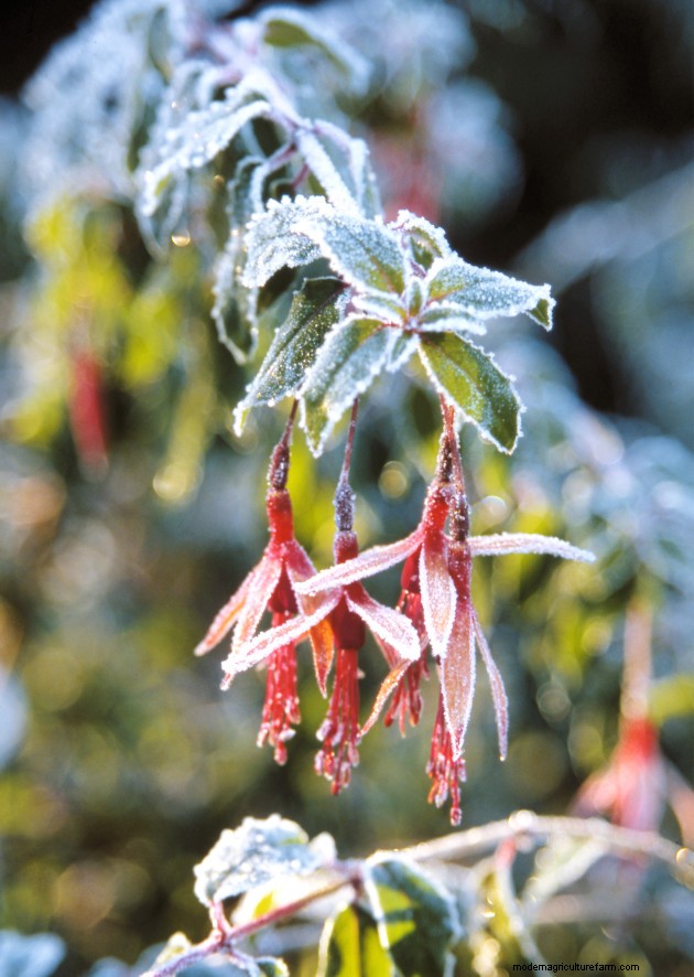 A true killing frost may not arrive until November, meaning that many plants continue to sally forth in blossom unscathed. Fuchsia magellanica offers profusions of nectar-rich flowers, even after mornings when the entire shrub sparkles with crystals of ice.