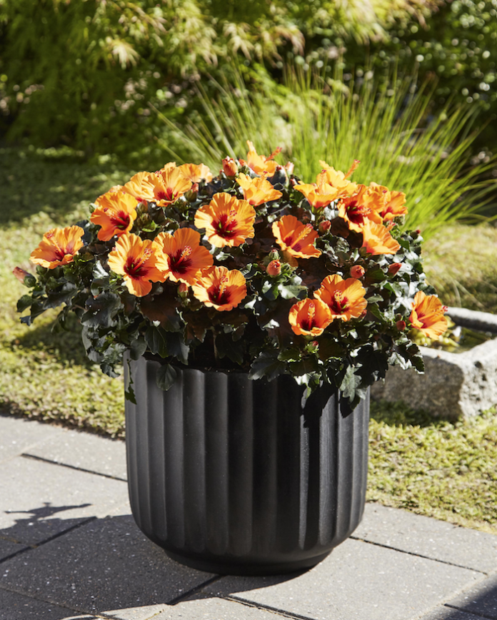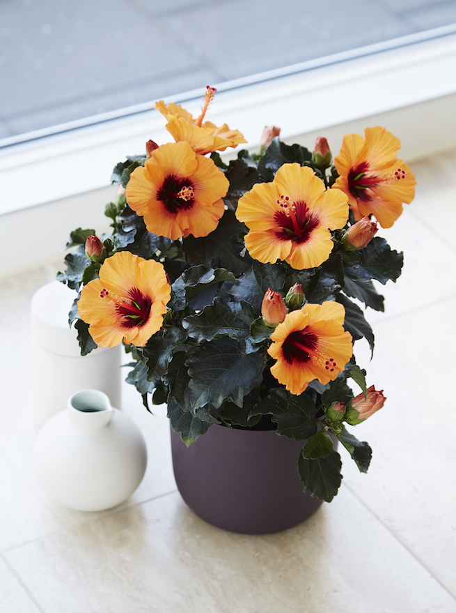 From new breeding and selected from tens of thousands of seedlings, HibisQs® Petit™ Orange differs from other traditional hibiscus with its smaller, vibrant orange, bicoloured flowers, its naturally compact habit and its small and shiny leaves. The plant is aimed at gardeners who want a more minimalist, but still exotic looking plant that is suitable for display as a houseplant or on the patio in summer. Flowers are plentiful and long-lasting, blooming from May until the first frosts, while the shiny, dark green foliage provides the perfect backdrop and is an added decorative bonus.