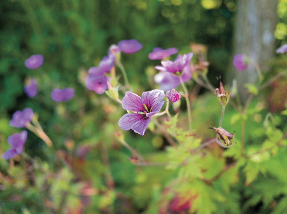 Hardy Geraniums bulk up quickly at ground level to form blankets of bloom. Sprinkle in the vigorous catmint Nepeta ‘Six Hill’s Giant’ with a smattering of Crocosmia Lucifer and so long as you’ve prepared the ground well, you’ll have a fabulous border with just a day’s work.