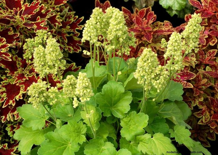 Plant 13: Heucherella ‘Autumn Cascade’ – This hardy variety has reddish-tan leaves with a darker interior and a great, cascading habit that can make it a useful ground cover or basket spiller.