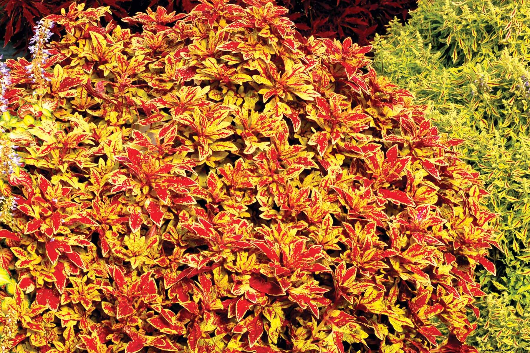 Plant 4: Coleus TERRA NOVA® ‘Marrakesh’ – This variety is extremely popular because the amber, copper, lime, and dark crimson complement so many colours in a container or garden.