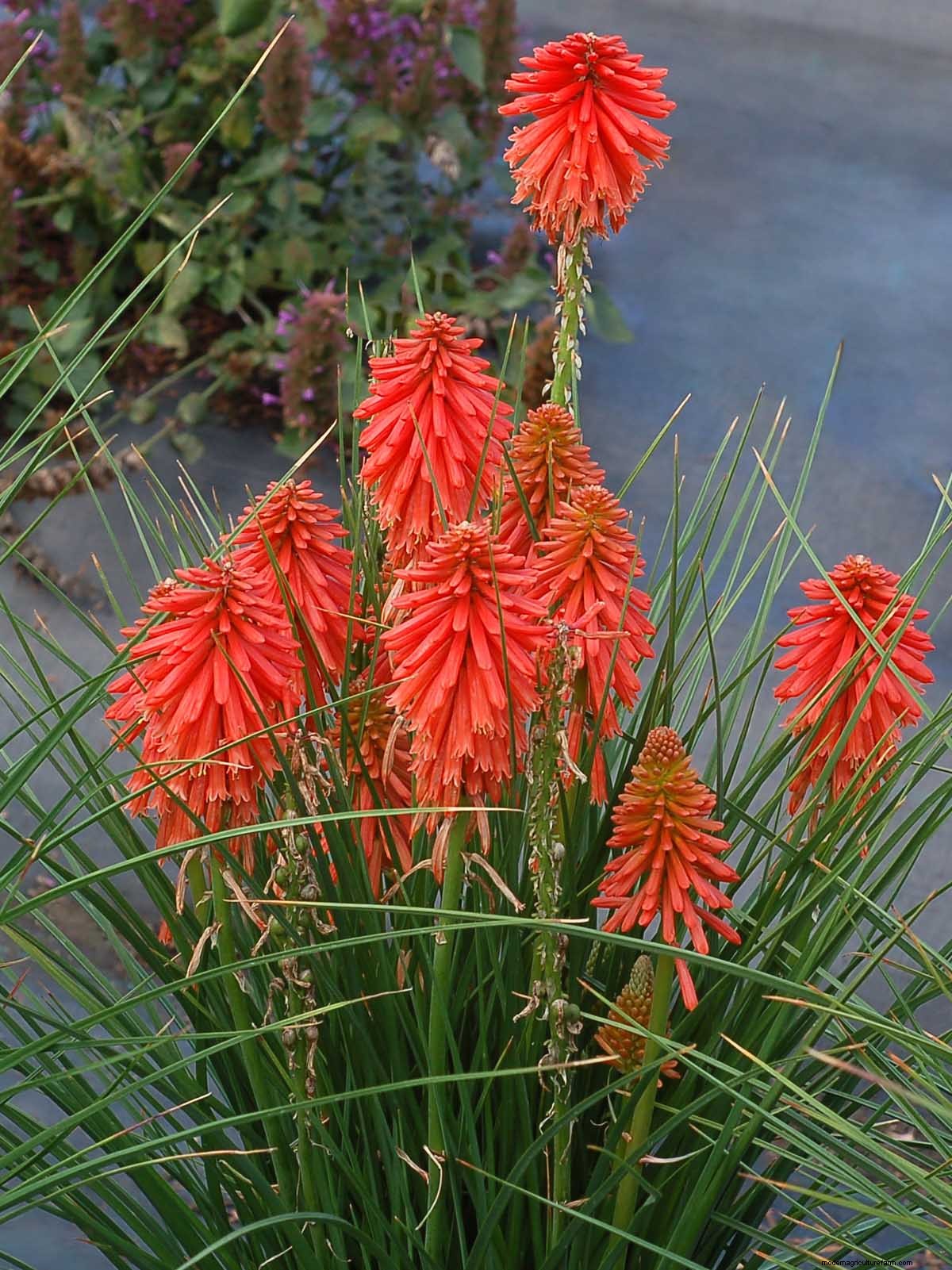 Plant 15: Kniphofia ‘Poco Red’ – It has big spikes of coral-red flowers over stiff, grass-like foliage. With a 60cm spread and 45cm tall, this kniphofia blooms and blooms.