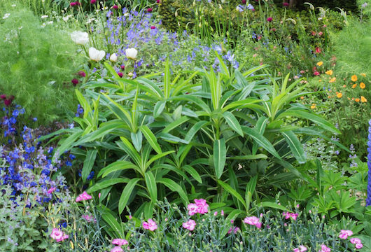Chris Beardshaw’s Morgan Stanley was full of vibrantly-coloured flowers but one plant that only had foliage to show, added much to the feeling of lush abundance. Euphorbia mellifera is also known as the honey spurge because of the sweet scent of its flowers but it is one of the best euphorbias for foliage and makes a naturally dome-shaped plant that is neater than many of its more sprawling cousins.