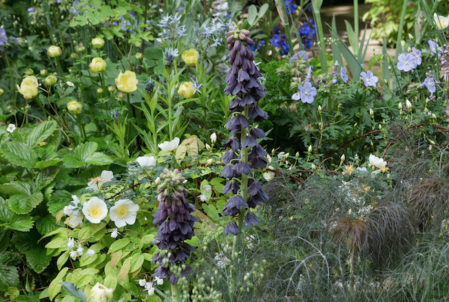 The Poetry Lover’s Garden by Fiona Cadwallader contained a network of pleached lime-trees and elaborate sculpture but tucked in among the tiered planting was this dark and mysterious perennial bulb that is near as you will get to a black flower. Despite its exotic looks it is a hardy bulb and the variety ‘Adiyaman’ is an especially free-flowering form.