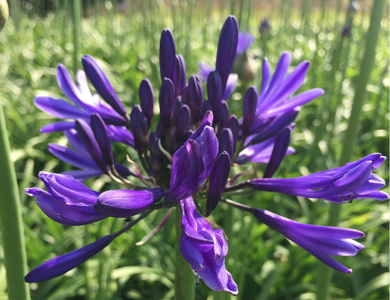 This sports bountiful bells of the deepest blue on arching stems that are tinted with midnight hues. It is a dramatic, bold agapanthus that will bask in the sun’s rays and works equally well in a container, if not better, because the more its roots are restricted, the better it performs. ‘Navy Blue’ produces flowers from July until September.