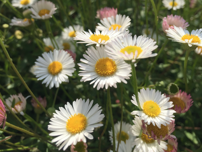 This daisy-like perennial should be welcome in any garden. It gently spreads and populates unsightly nooks and crannies with masses of delicate daisy-like flowers over an incredibly long flowering period, from late spring into autumn. The flowers blush demurely as they age, turning pink with their winking central eye. They are good for encouraging bees and butterflies and thrive most when savouring the sun’s rays.