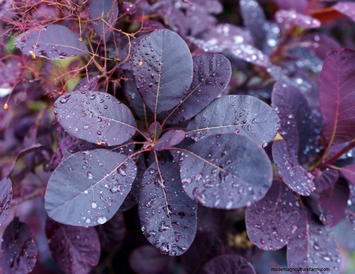 The dark purple leaves of this smoke bush will offset your borders with a dark background. The vigorous shrub produces oval leaves that are larger if the shrub is pruned back hard each year.
