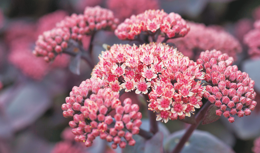 Foliage colour seems to deepen when its clusters of flowers are produced, carried above the fleshy leaves like stalks of reddish-pink broccoli. They last as seedheads well into winter, too.