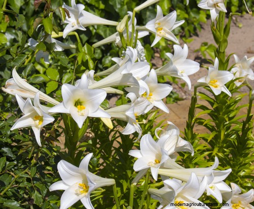 If you love lilies, then the classic Madonna lily shouldn’t be forgotten. It is a tall plant, growing over a metre tall, topped with sprays of exquisite pure white, strongly scented flowers. Planted in autumn, it may take a year or two to fully establish, but flowers typically appear in early summer. The bulbs need to be planted just below the soil surface and the flowerbuds need exposure to full sun.