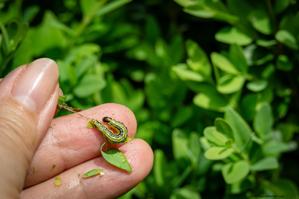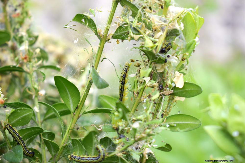 Symptoms of damage are patches of dieback, which could be confused with box blight, patches of webbing and frass (droppings) near the damaged areas.