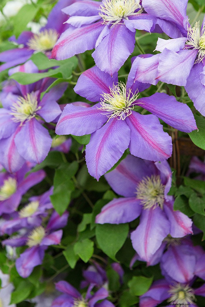 New Clematis ‘Dazzle’ lapped up the attention on Thorncroft Clematis‘s stand too, with large, flamboyant striped flowers in purple and pink. “It starts reddish-purple, then becomes more mauve and red, and then fades to a silvery tone, which is a big improvement on ‘Nelly Moser’,” explains Thorncroft’s Peter Gooch, adding that it goes on to flower again in late August after its early summer flush.