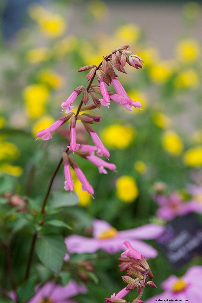 While in the Great Pavilion, new salvia ‘Wishes and Kisses’ caught the eye on the Hardy’s Cottage Garden Plants exhibit, with long tubular bubblegum-pink flowers on dark stems, highly attractive to bees. Suiting a sunny position or a container, it has branching, upright growth and produces near constant flowers from May until the first frost needing no dead-heading. It isn’t winter hardy, so needs protection from frost if you want to keep it for next year.
