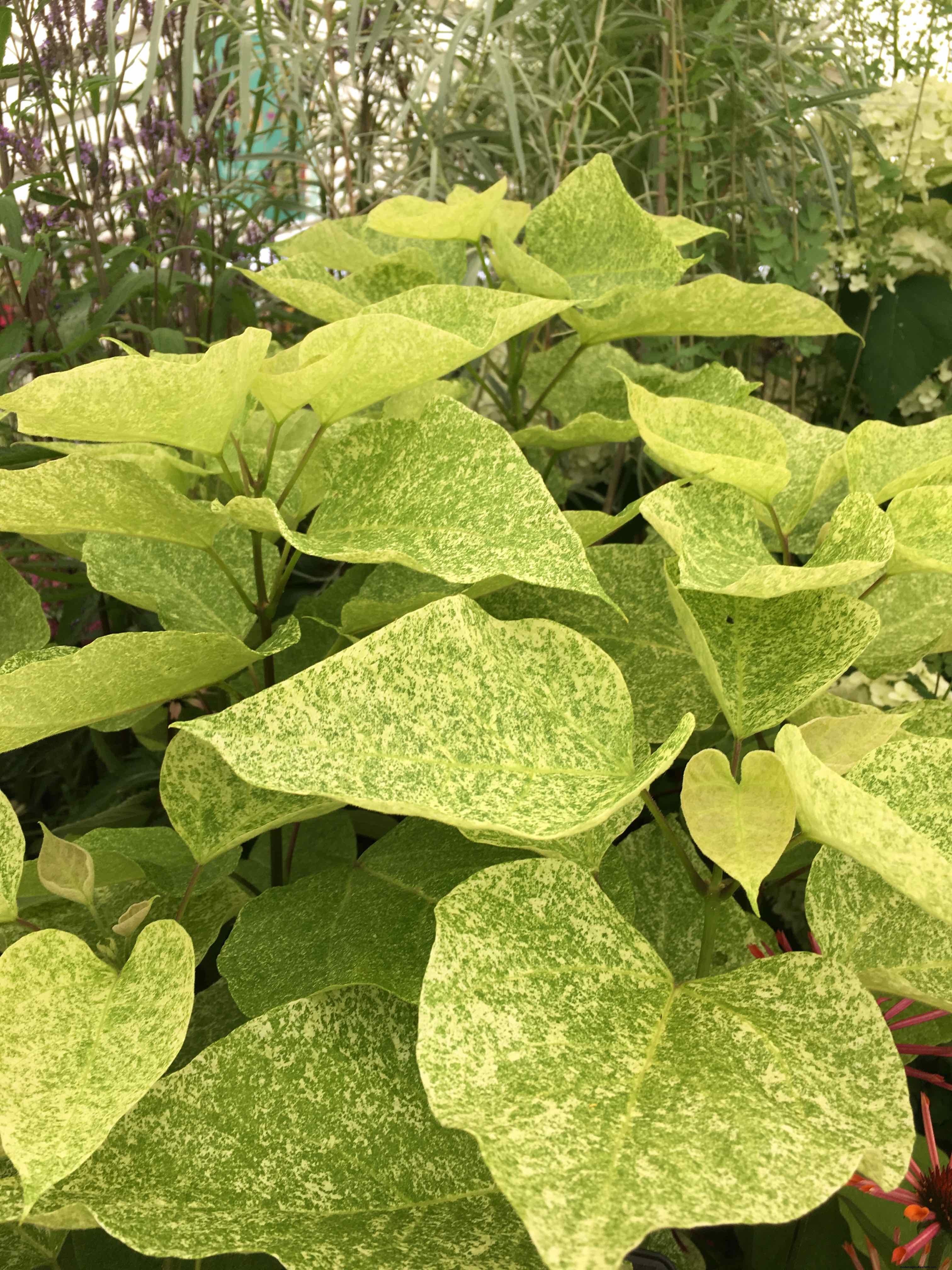 Many of us are familiar with catalpa, the species of tree with large heart-shaped leaves you can coppice hard to encourage big, tropical foliage. Madrona Nursery had an unusual alternative: Catalpa speciosa ‘Pulverulenta’, with leaves speckled all over with a haze of creamy yellow. Brilliant for adding luminosity to a tropical border.