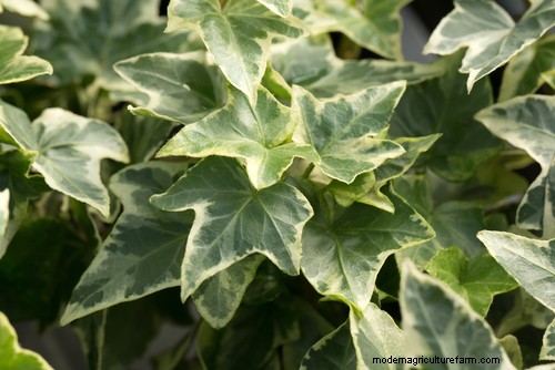This evergreen English ivy is slow-growing and self-clinging. It has diamond-shaped grey-green leaves with creamy-white colouring around the edges. In October to November it produces small, yellow-green flowers, followed by black berries (the berries are poisonous and should be kept away from humans and pets).