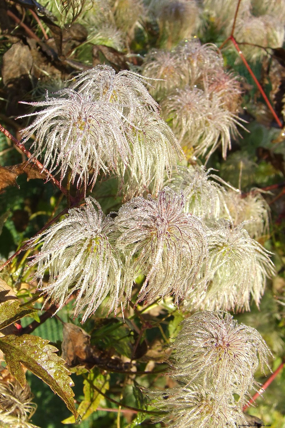 Once Big Bill’s flowers have finished the display is not over: an abundance of silver seed-heads takes their place. These hoary heads look fabulous on frosty mornings with the sun glinting off them. Bill Mackenzie needs plenty of space and looks excellent when left to scramble through a hedge or into a tree. Alternatively, it can be handy for hiding that unsightly oil tank or old garden shed!