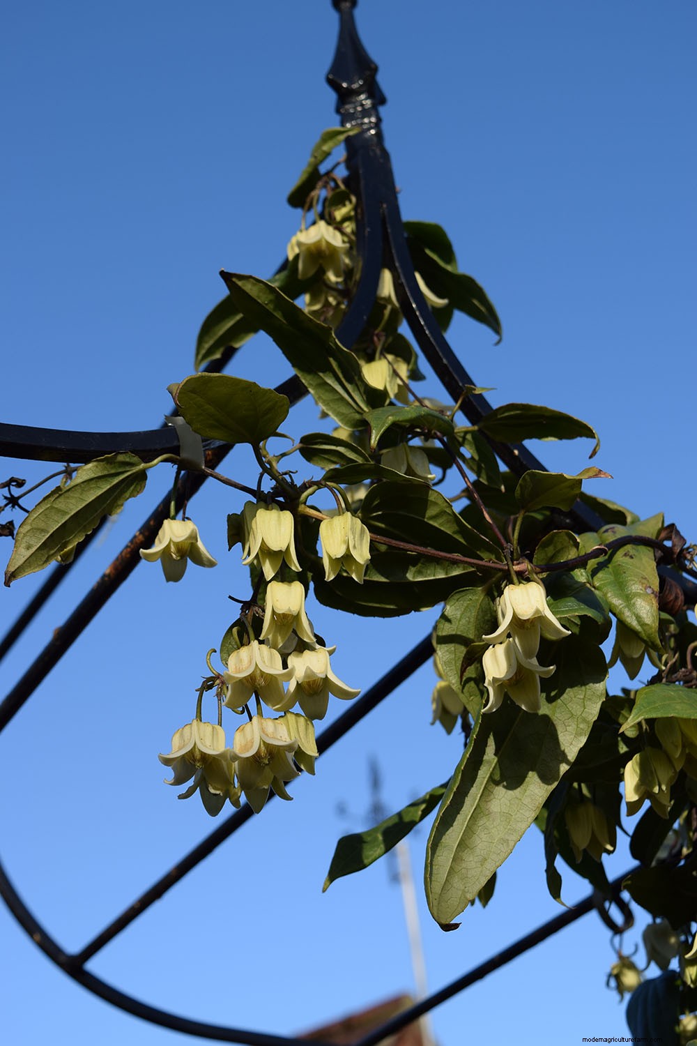 For wonderful glossy evergreen foliage during winter, ‘Jingle Bells’ is the clematis to plant. The beautiful flower comes from a family of clematis called cirrhosa which are native to the Mediterranean but hardy in most of the British Isles. Its creamy white bells carry a slight citrus fragrance when grown in a sunny spot.
